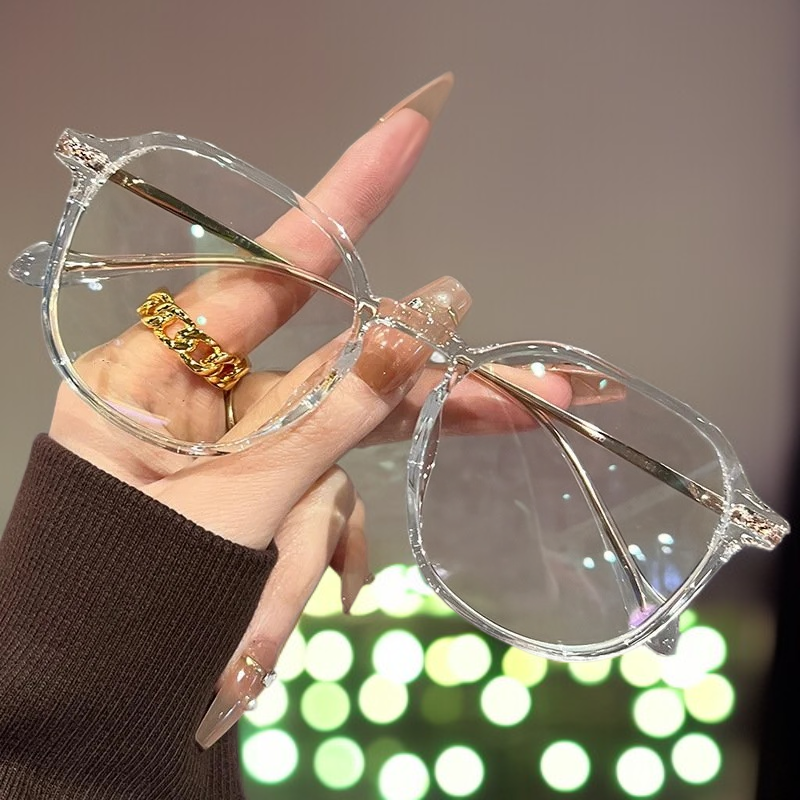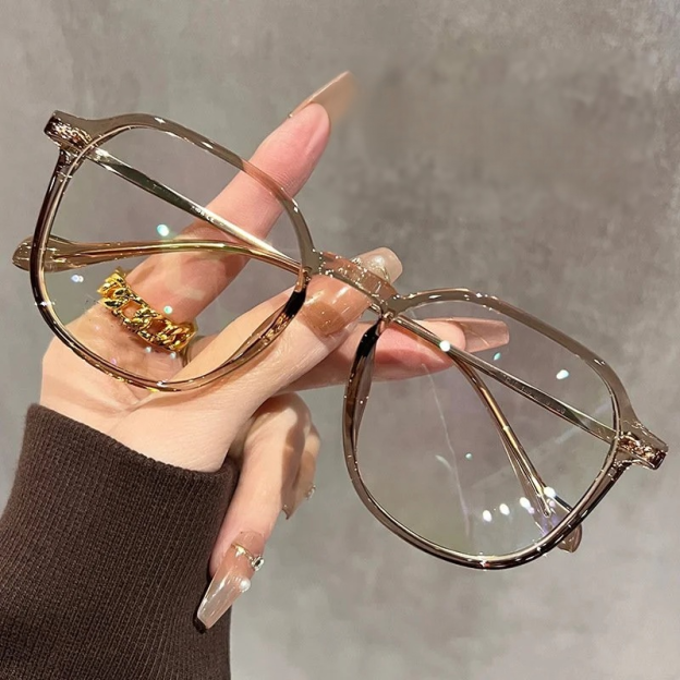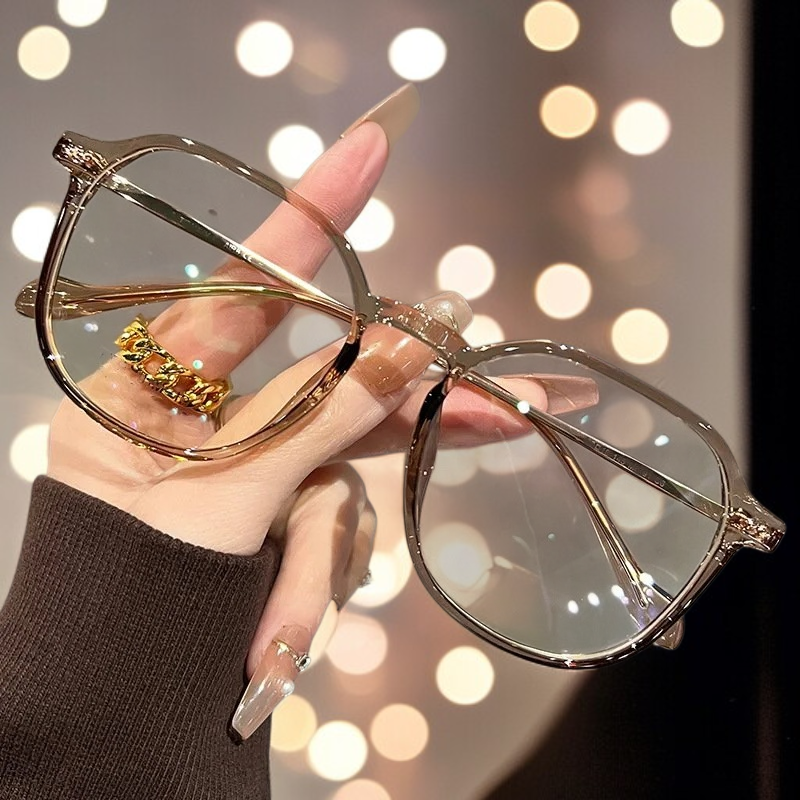 Ultraleichte TR-Brille mit großem Rahmen, kalte braune Farbe, ohne Sehstärke, Anti-Blaulicht, einfac